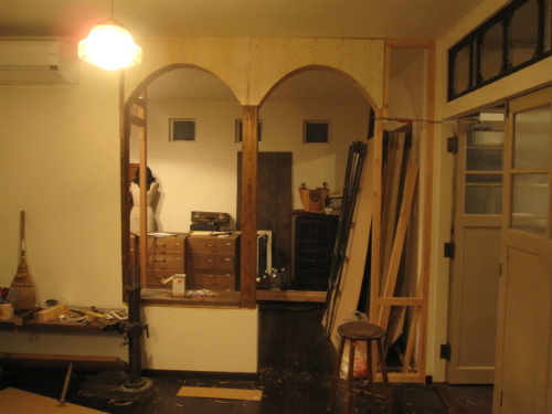一番最初の大工事は我が家と隣人宅を隔てていた壁をくりぬいてオリエンタルなアーチにする事。