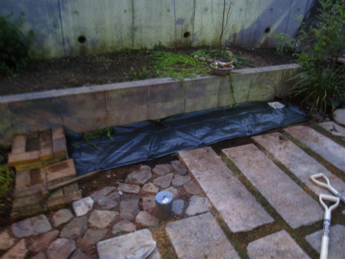 防草シートを敷いた上には