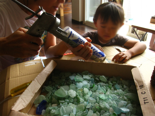 その間、かっちゃんが「雨でも何か皆で作れるように」と自分で拾ったシーガラスを持って来てくれていて