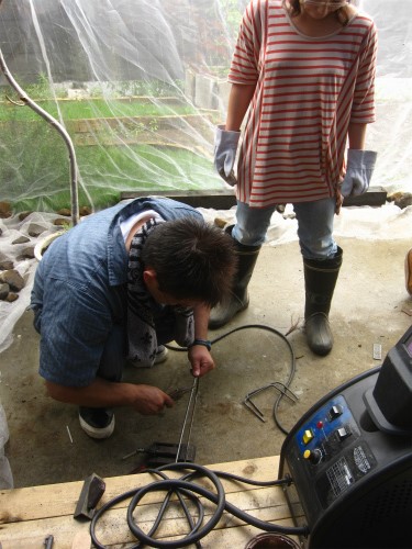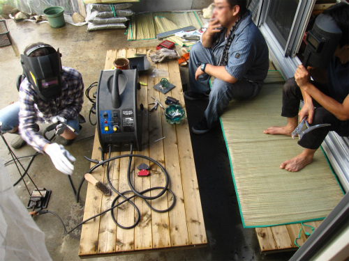溶接機やらパイプやら他機材やらをドカドカっと車から出して