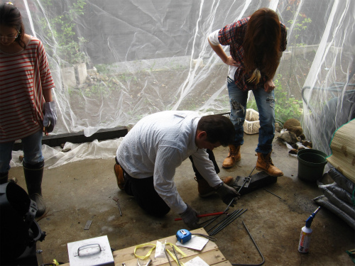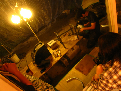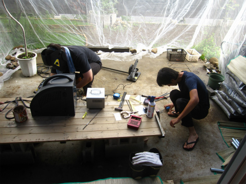 「真ん中に傾斜つけないと駄目だよね」「紐垂らしてあそこ引っ張れば」