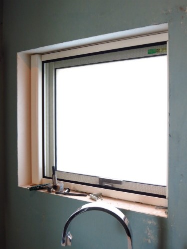 合板でできた窓枠は付けずクロスを巻きこんでるだけ。