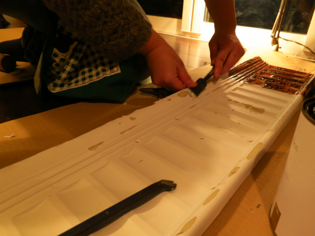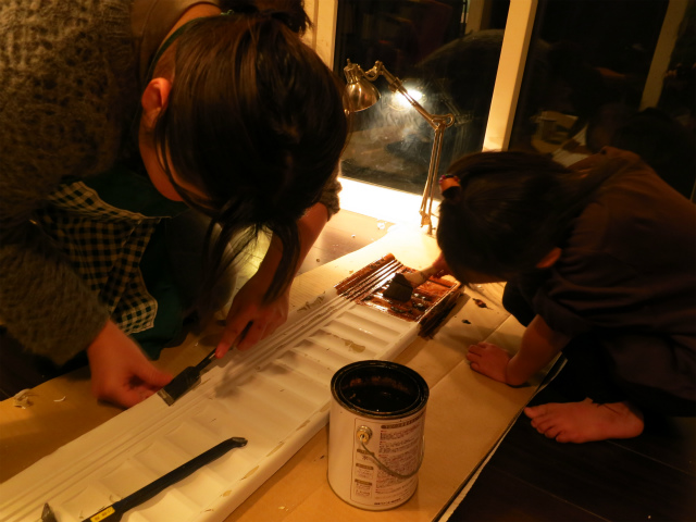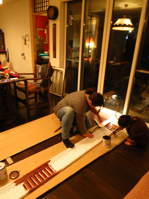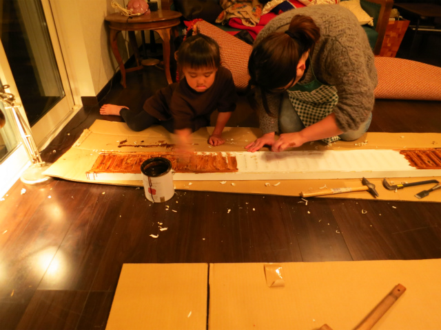 2013年12月29日に女子2人に届いていた廻り縁の加工をお願い。