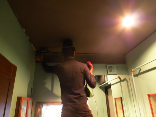 10㎏以上ある鉄のアイアン照明を付ける為にこの様な状態になっているのですが
