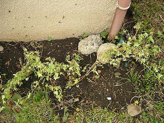 どうすればいいのか分からない庭 2 庭・植物 2008.05.21 暇だったので 入り口の野生化しているアイビーを片隅に移植してみました。 生き残るか否かはこの子の生命力次第! このまま放置です。 来年の春には立派な雑草避けになってる事を願う!