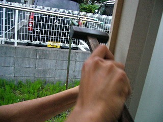 まず、窓枠をはめ込む為の枠を打ち込みます。