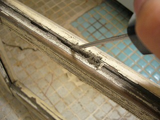 まずドライバーなどでガラスの溝を引っかきます。