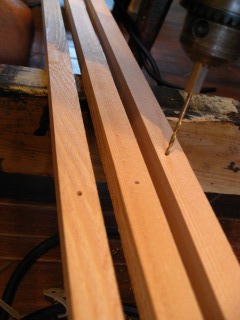 まずは釘を打ち付ける時に割れない様、事前に穴を開けます。