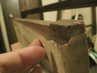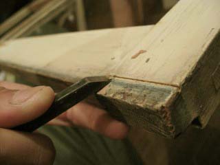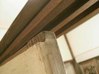 建具のこの部分が少し厚くて、鴨居に入らないので、少し削ります。