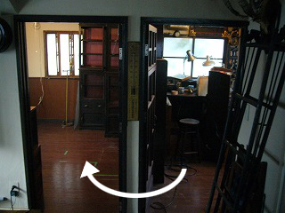 右の部屋から左の部屋へ移動します。