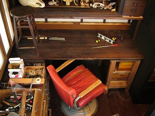 以前、友人から貰った美容院の椅子をここで設置。