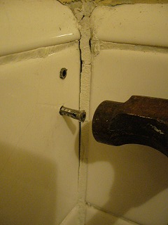 金槌で軽く叩きながら押し込めます。