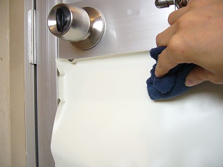貼りやすい様に上10㎝程度の裏紙をはがします