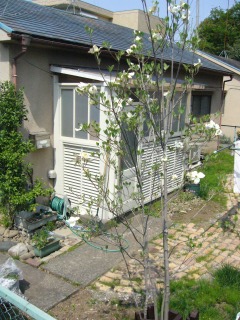 記念樹として頂いた株立ちのハナミズキも無事にお花を咲かせています。