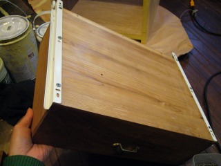 棚の段の板にスライドを取り付けました。