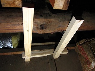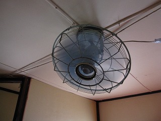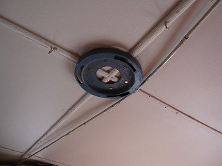 扇風機が重いので、重みで天井が下がらない様に、家の梁と天井のベニヤを