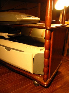 棚を改造したキャスター付きプリンター・スキャナー専用棚です。