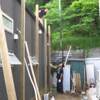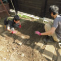 地面が堅いので枕木の穴を掘るのも一苦労です。