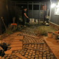 水栓作業と芝を敷いたホットで熱々な庭に強力部隊登場!