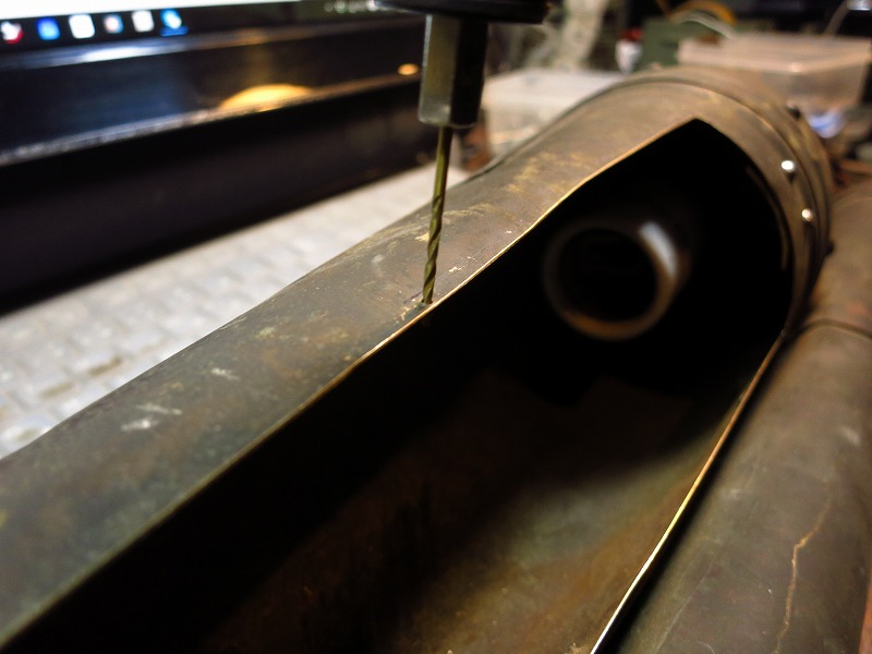下穴を開けて、縁取り用の金具をネジで固定していきます。