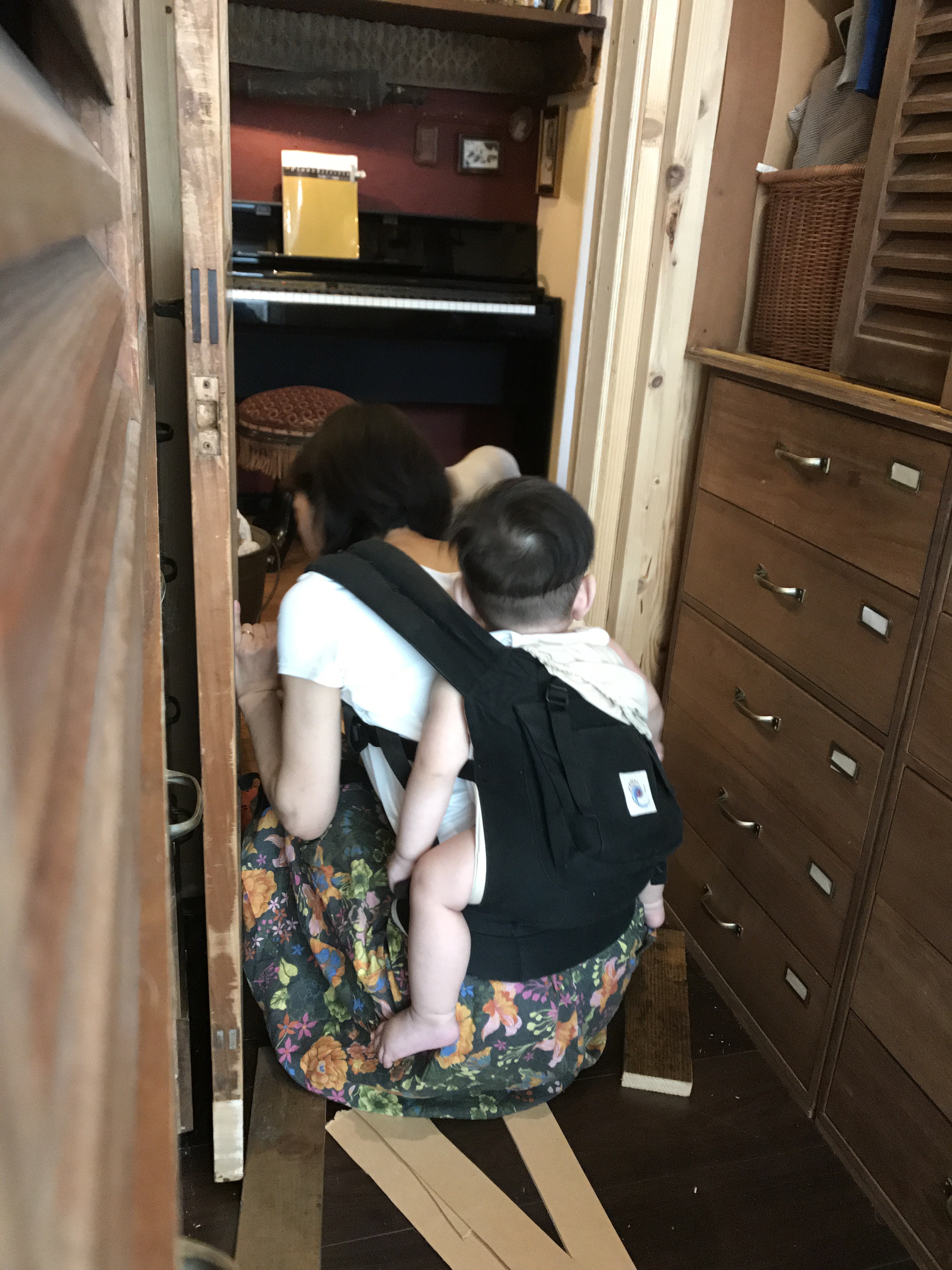 結局狭い所でおんぶしながらの作業。