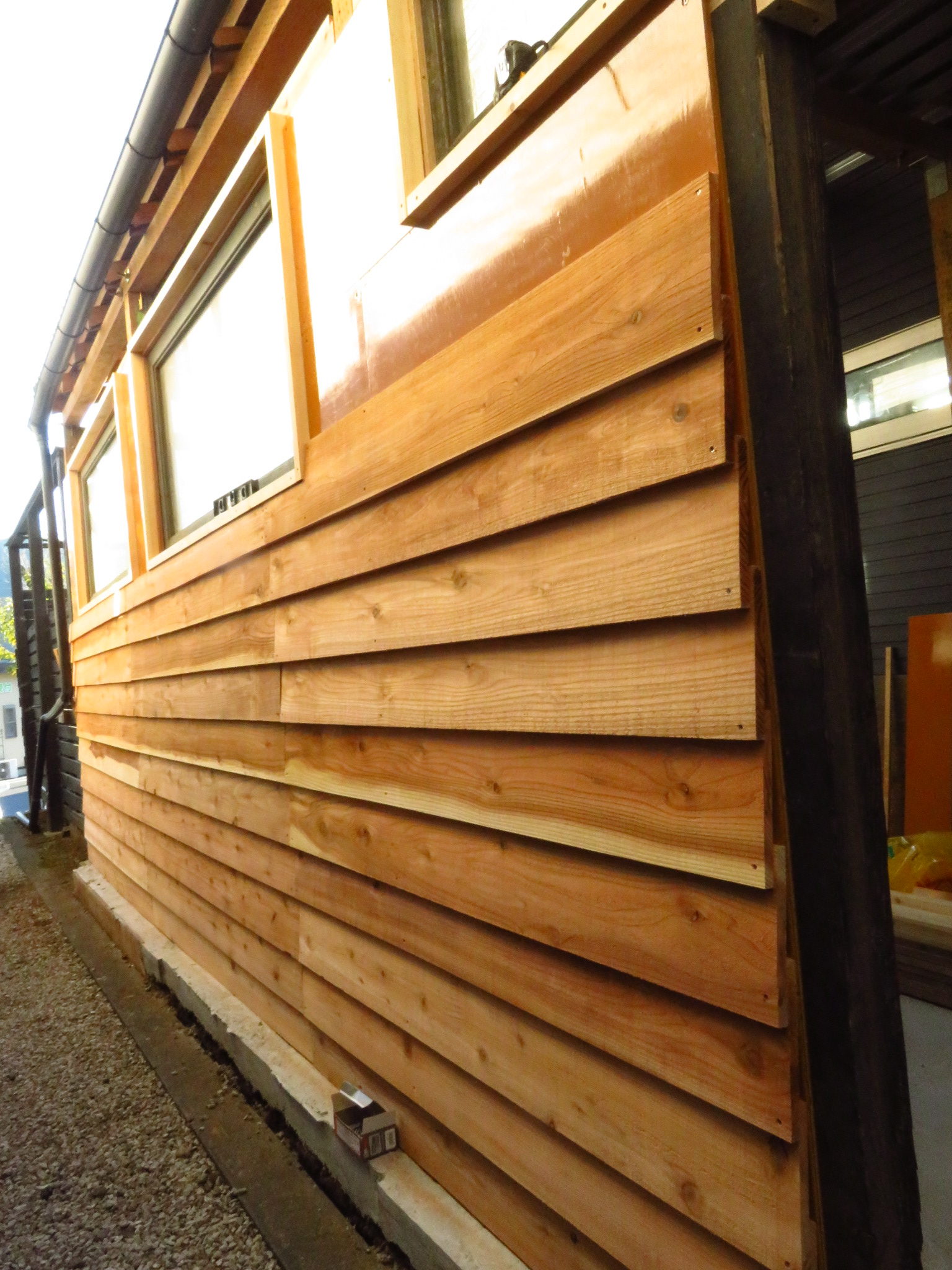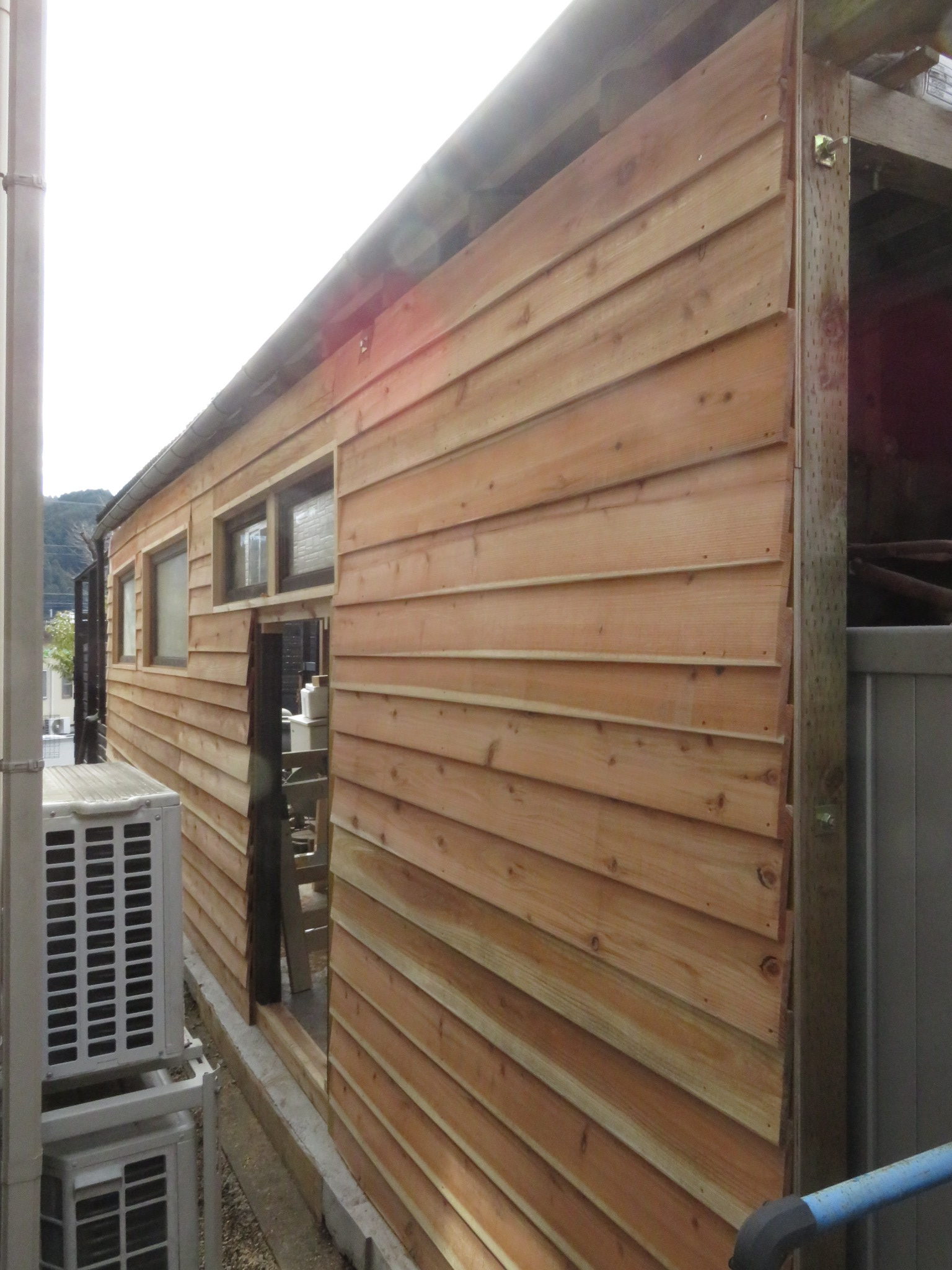 小屋の壁が綺麗に杉板で埋められていく光景、圧巻ですね!