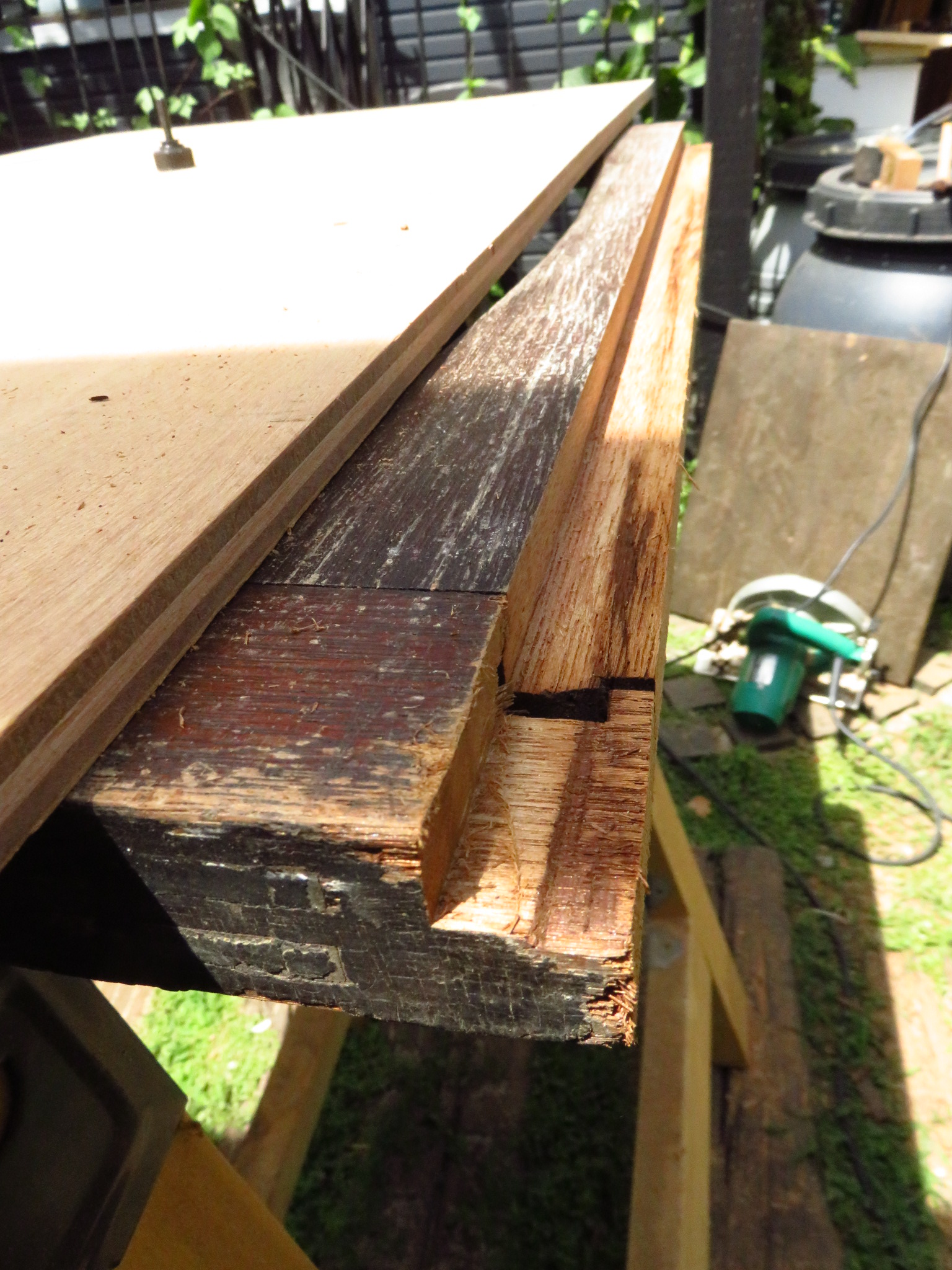 建具の現状だと、建具の溝が摩耗したりしてい歪んでいるので、直線になる様にカットし直します。