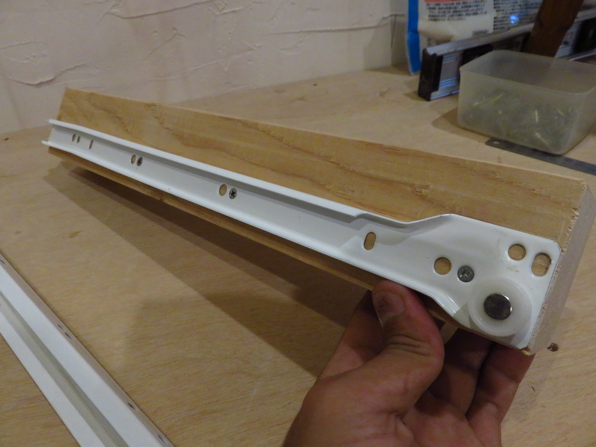 本当は奥まで引き出せる3段レールを使いたかったのですが在庫があったのでとりあえず設置。
