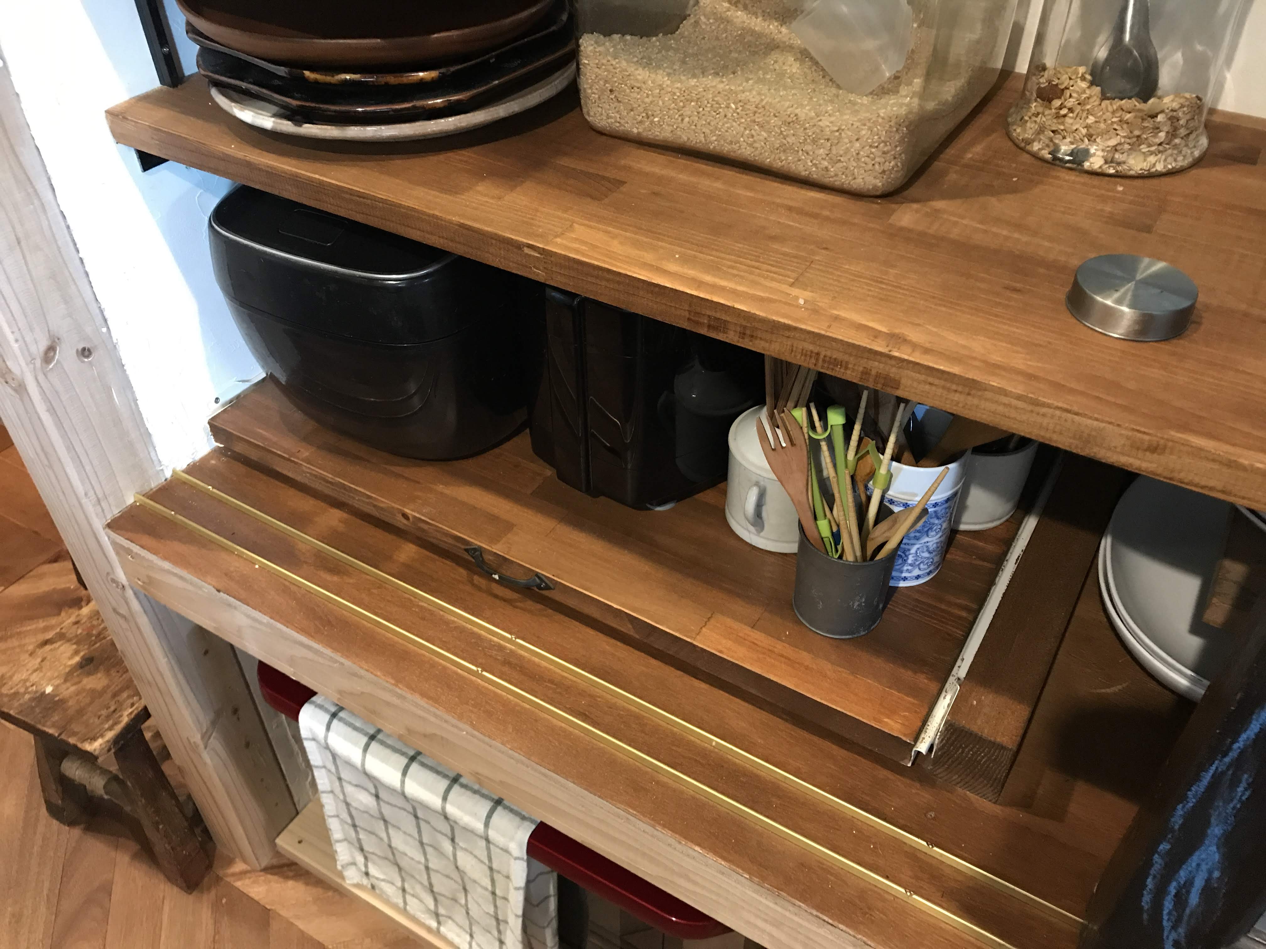 建具との絡みがあるので1枚分の幅でしか引出しを作れずトースターは断念。
