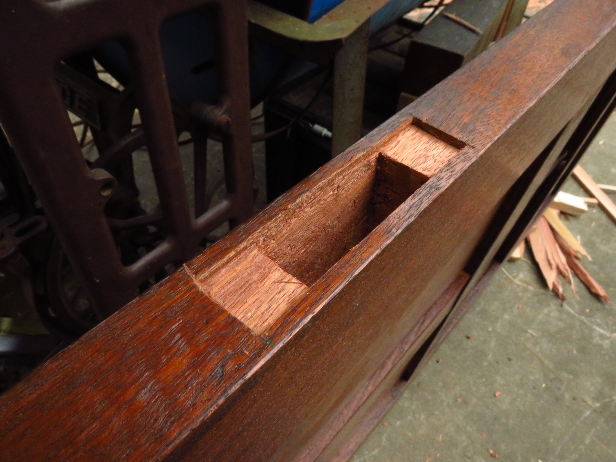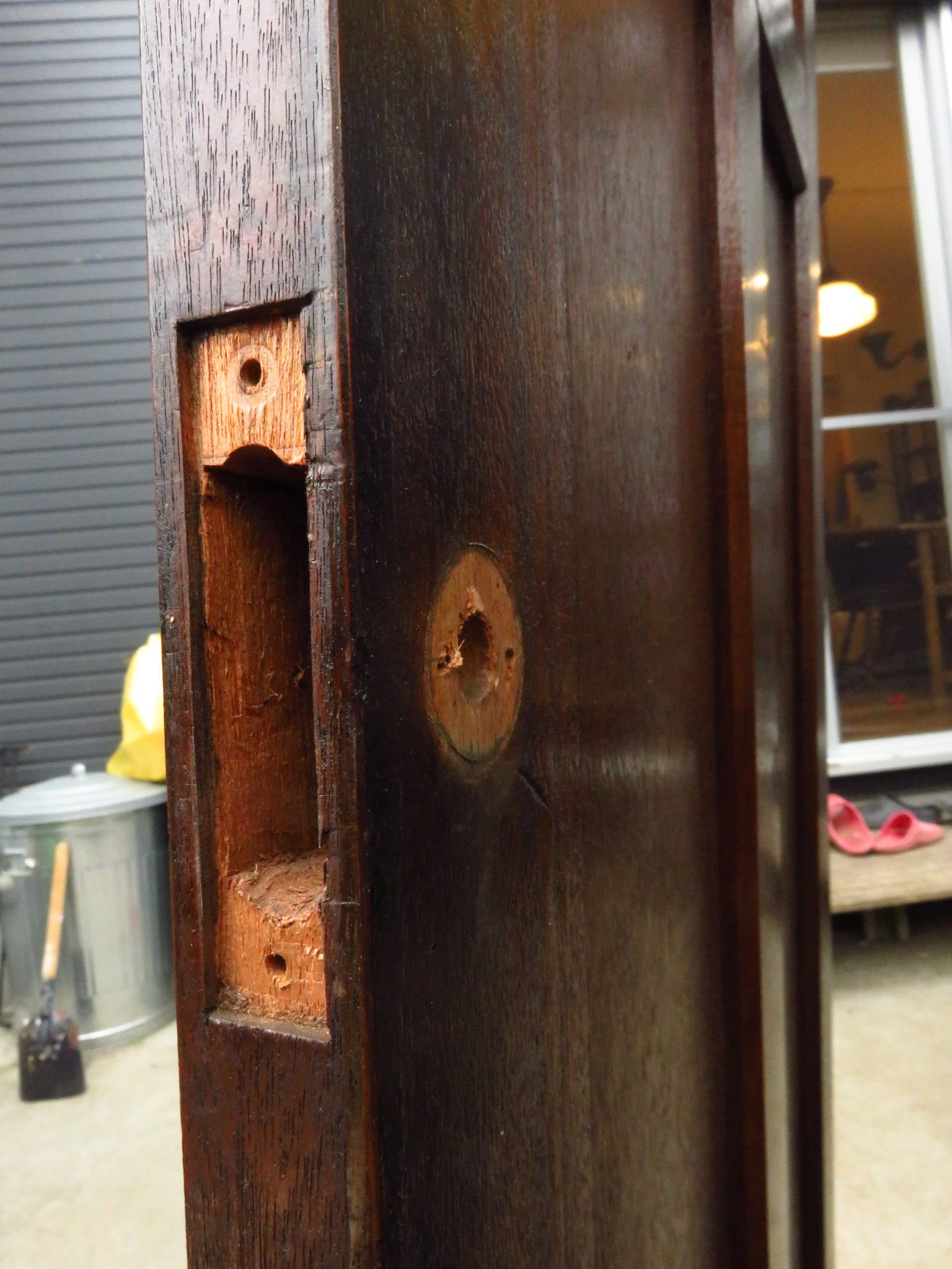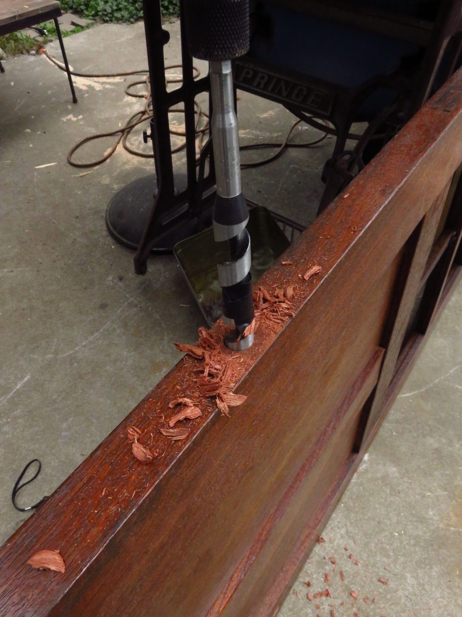 鉛筆で薄く線が引いてあるラインが、金具収納位置になるので、このライン分を削り穴を開けて行きます。