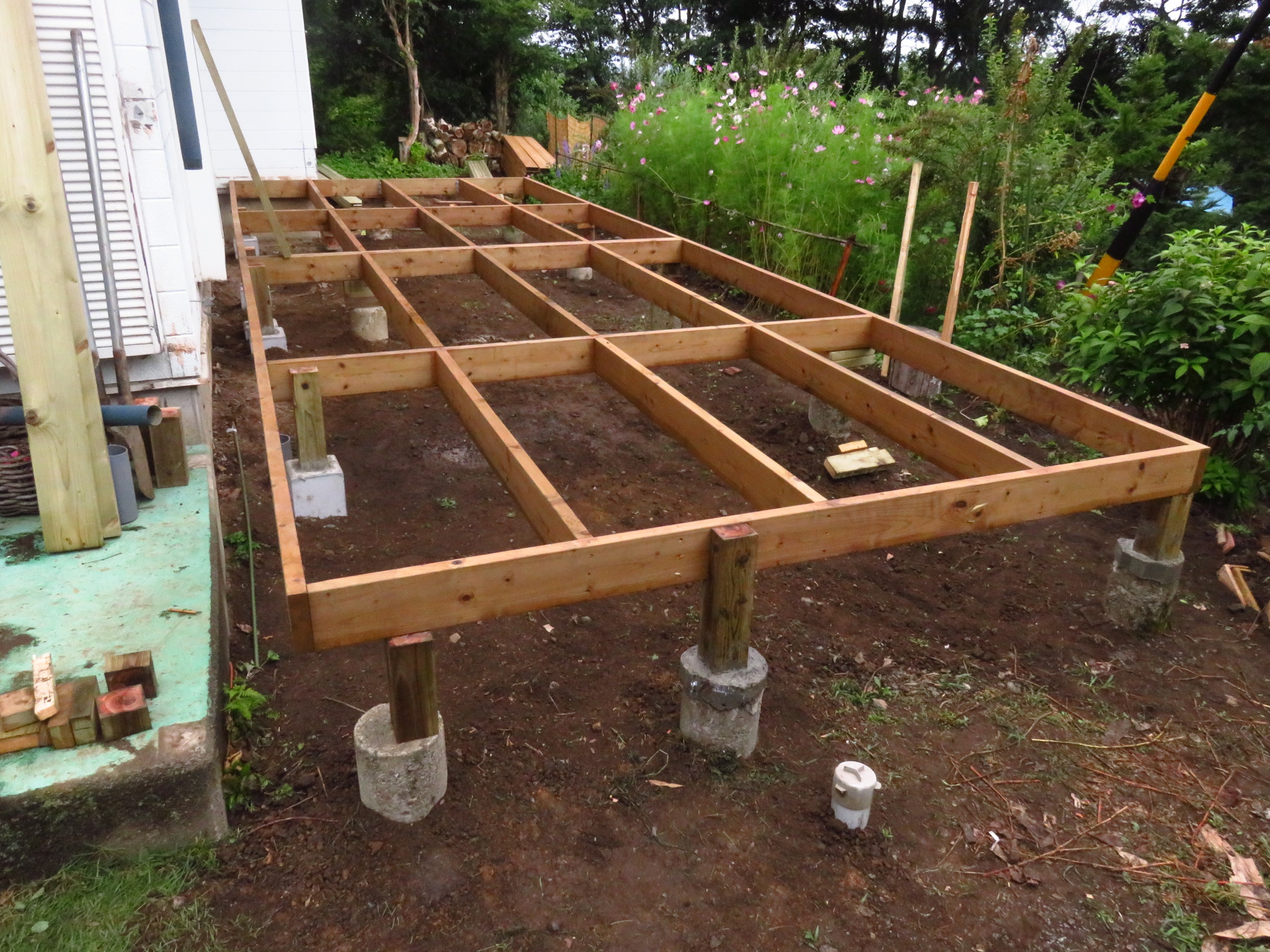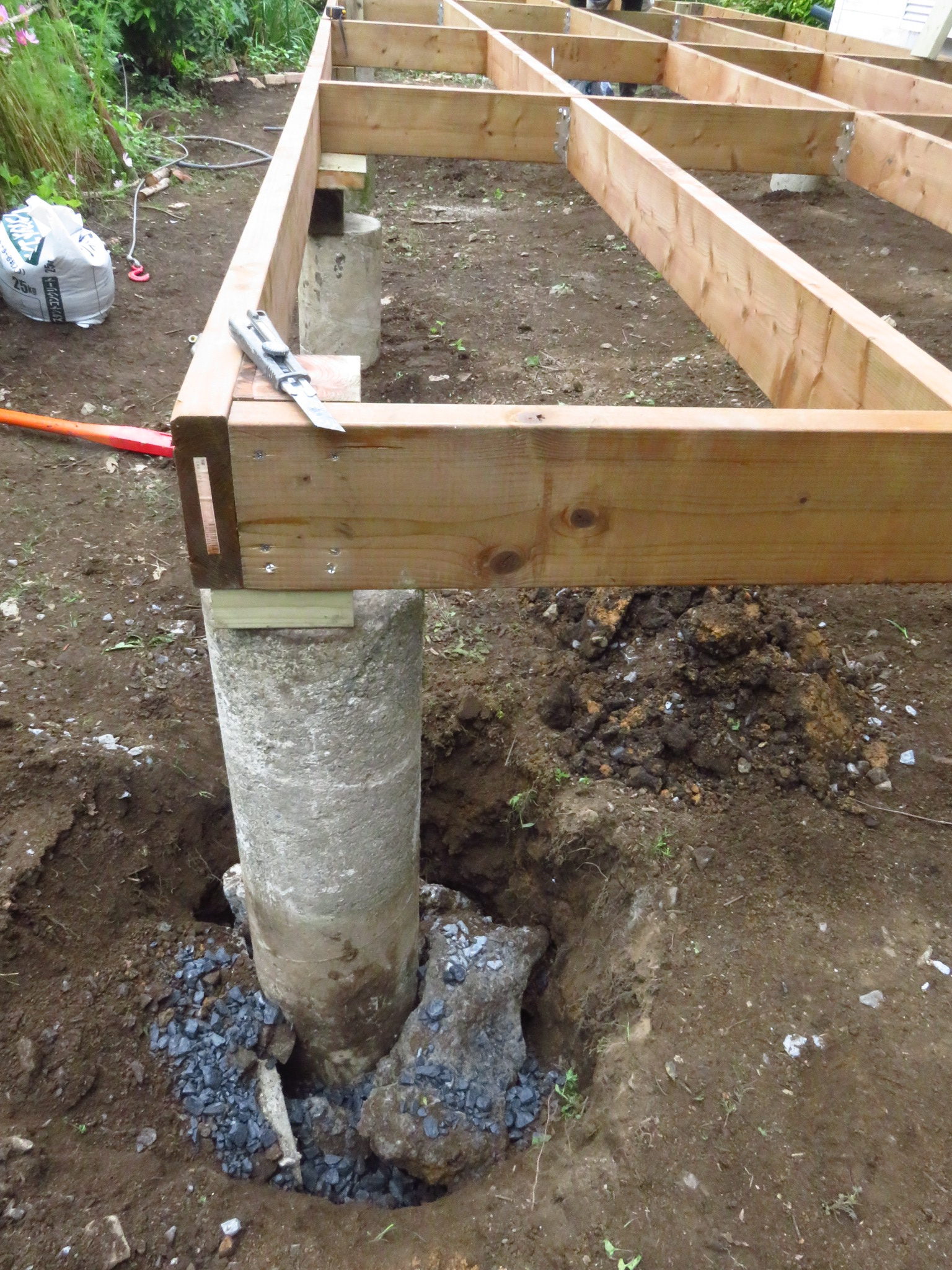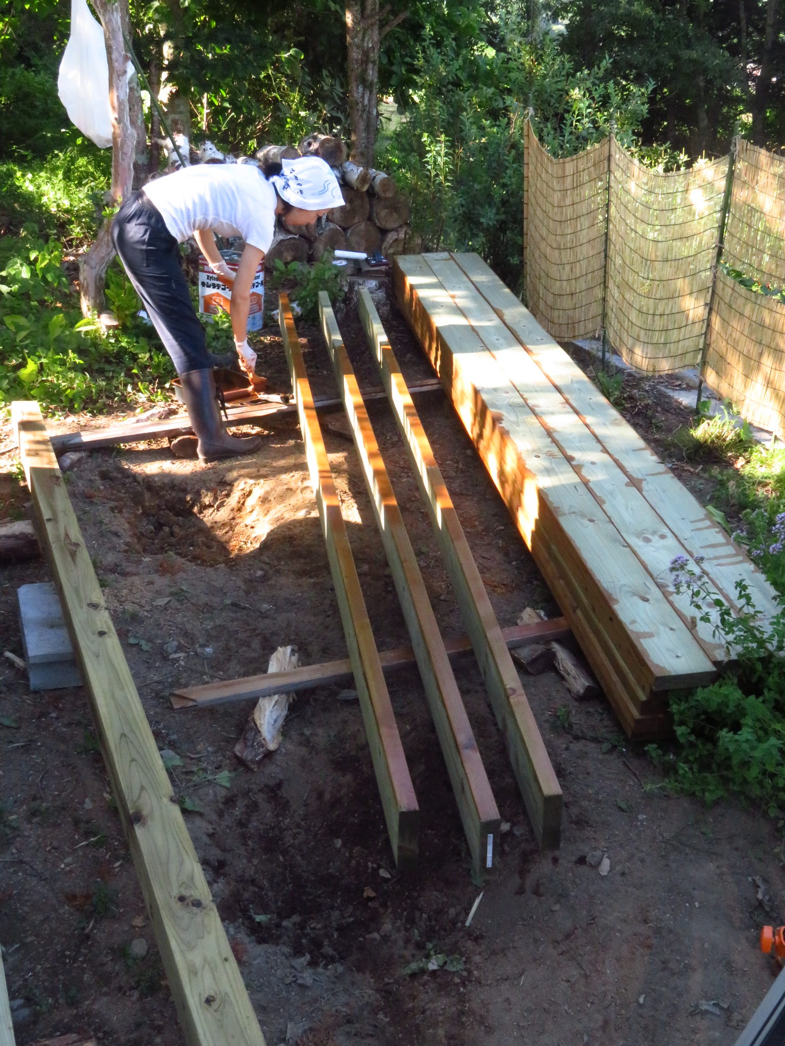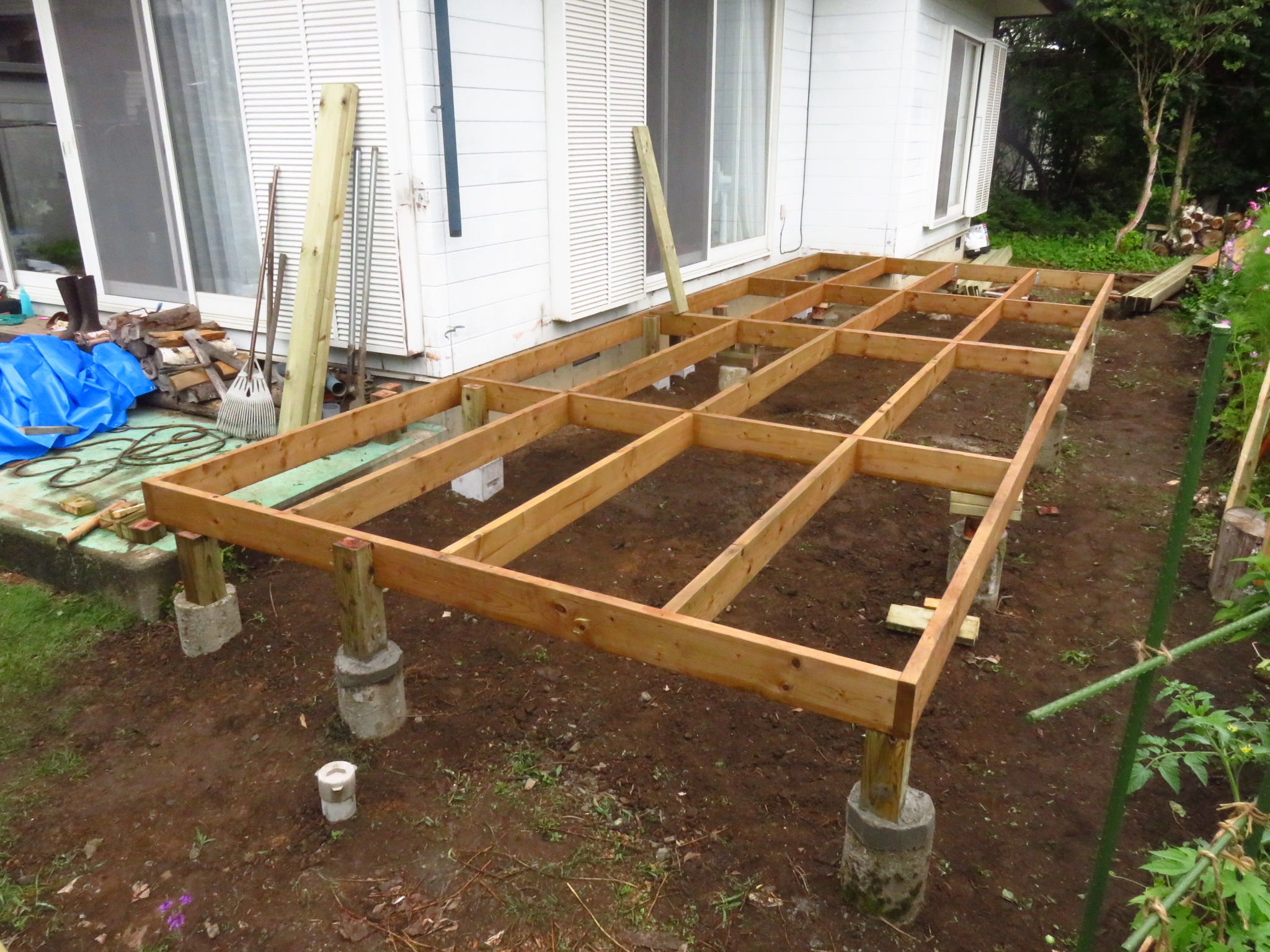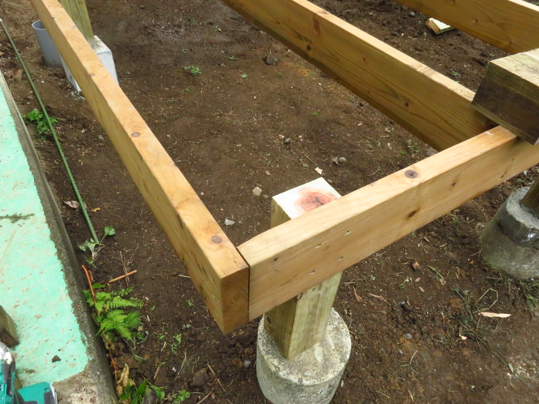 レベルも出ていて、柱で固定されているので、後は強度を上げる為に、
