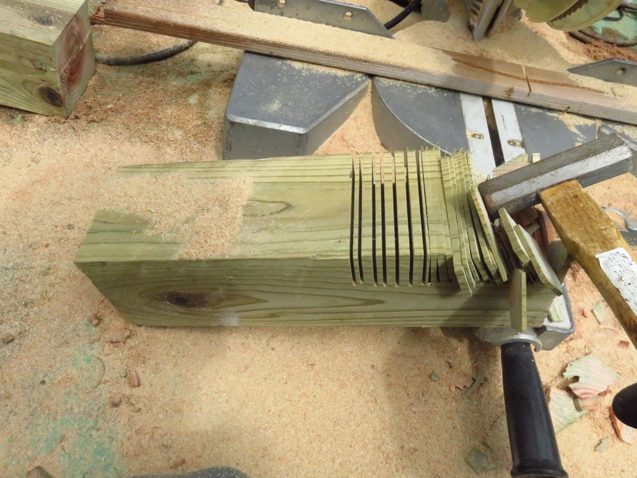 スライド丸ノコで短冊切りにして、かき込む方法もあります。