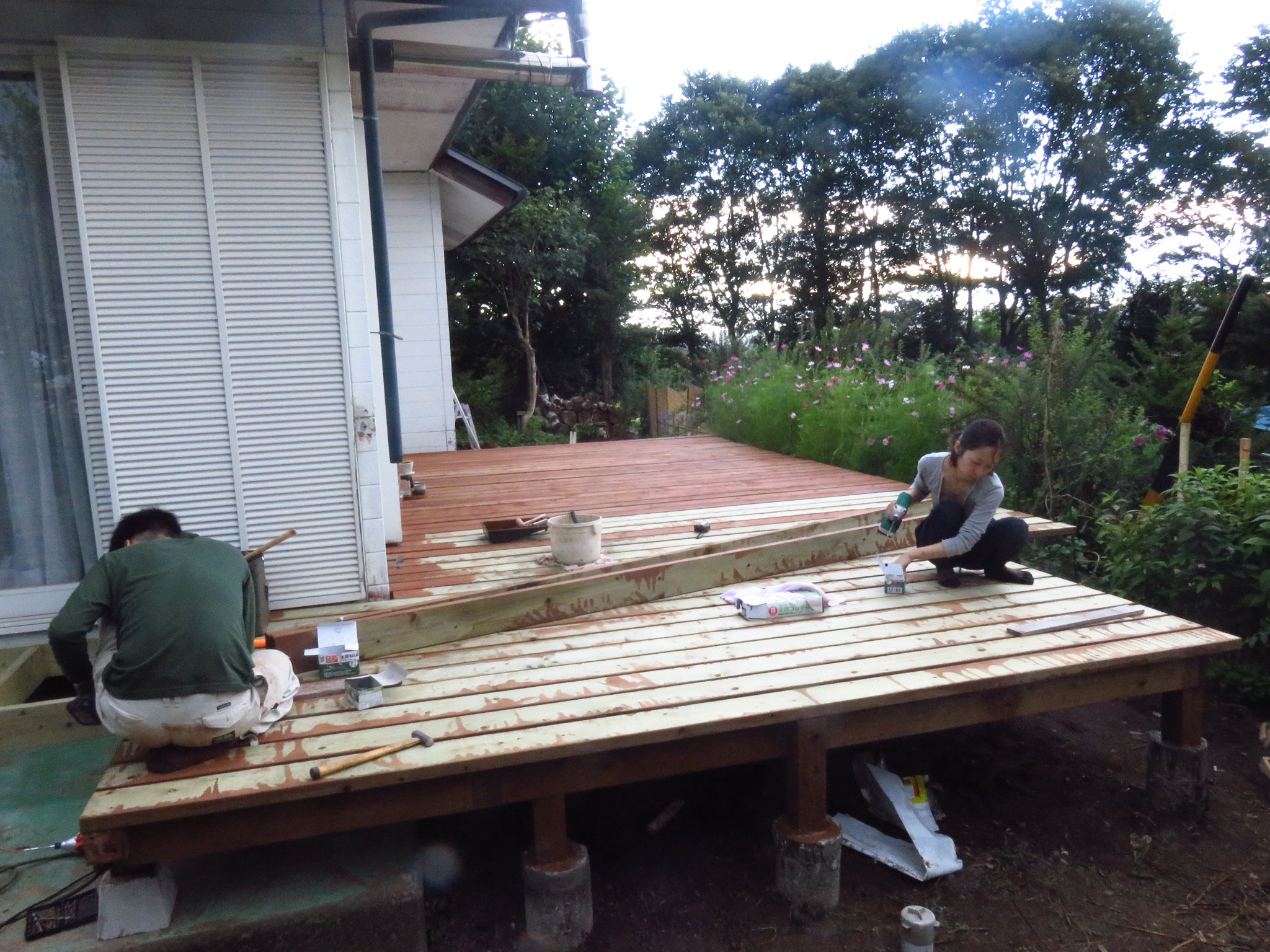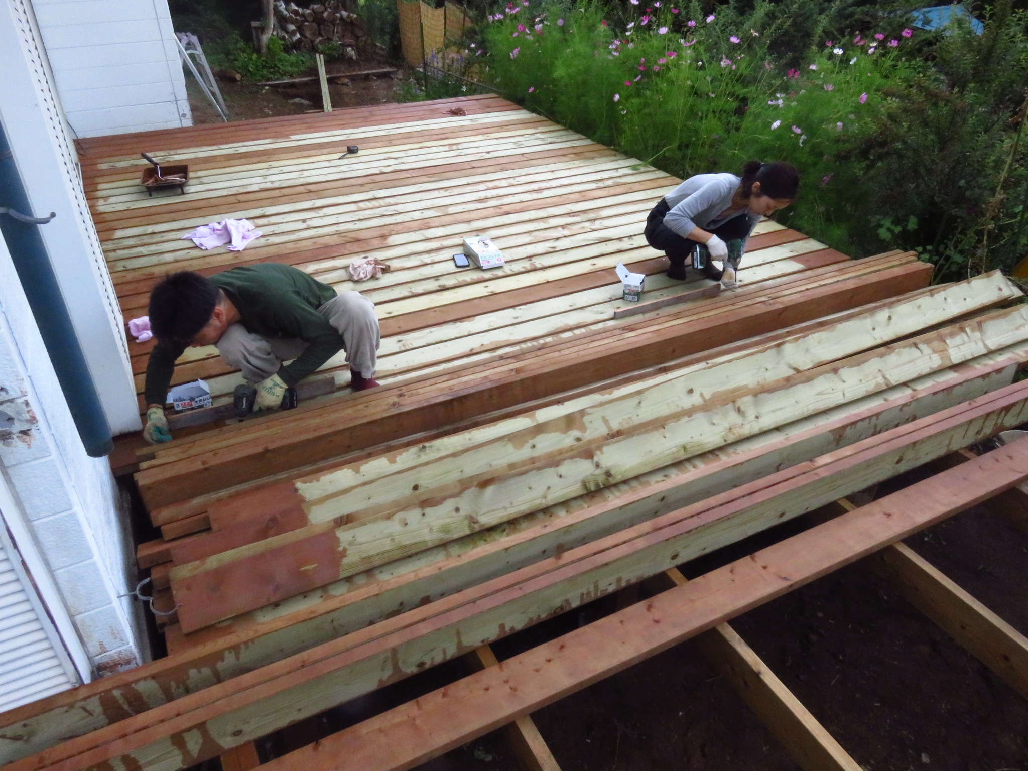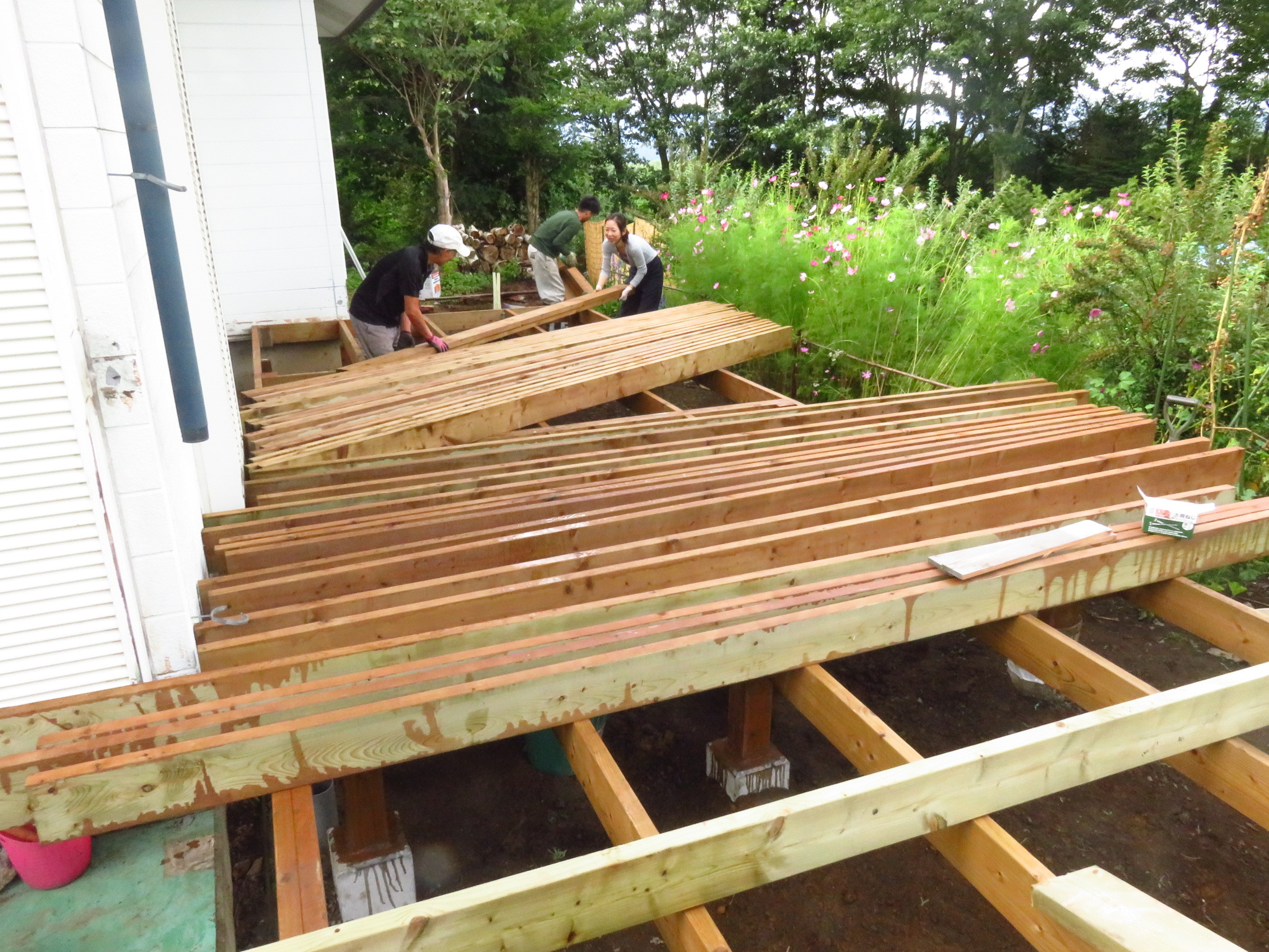 ウッドデッキ制作もいよいよ終盤です!!