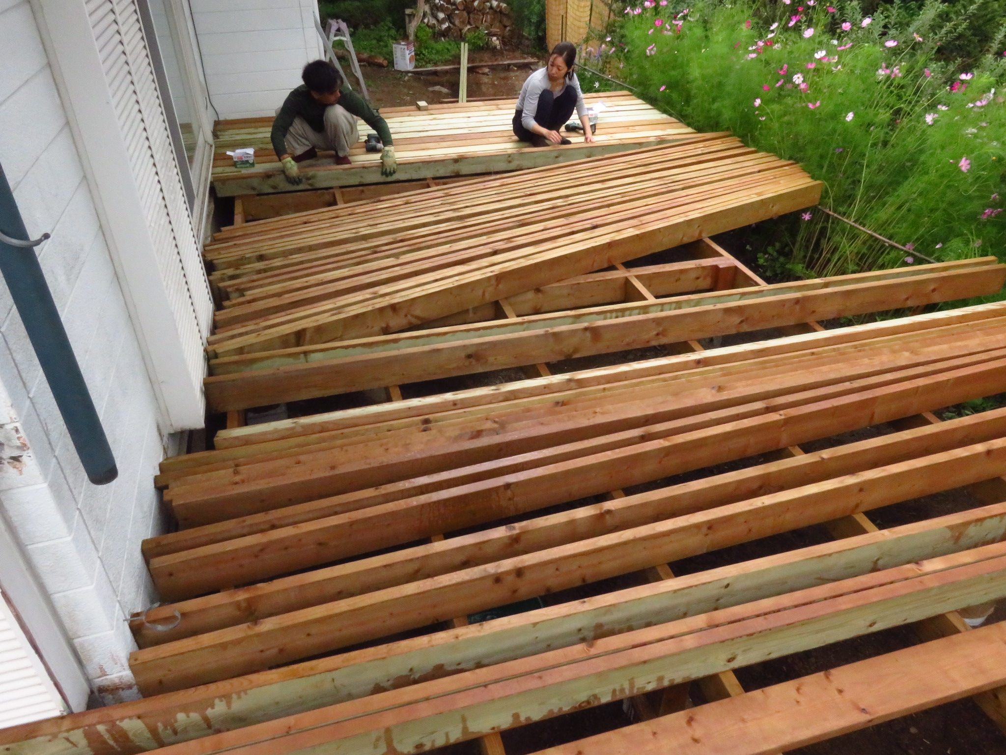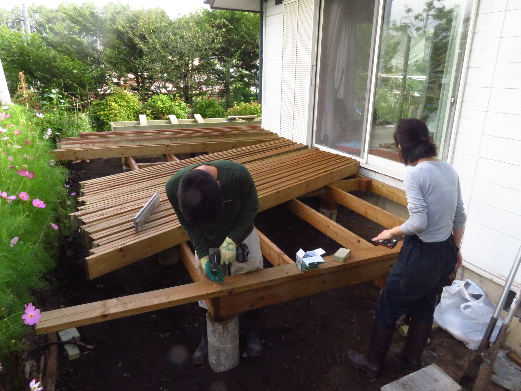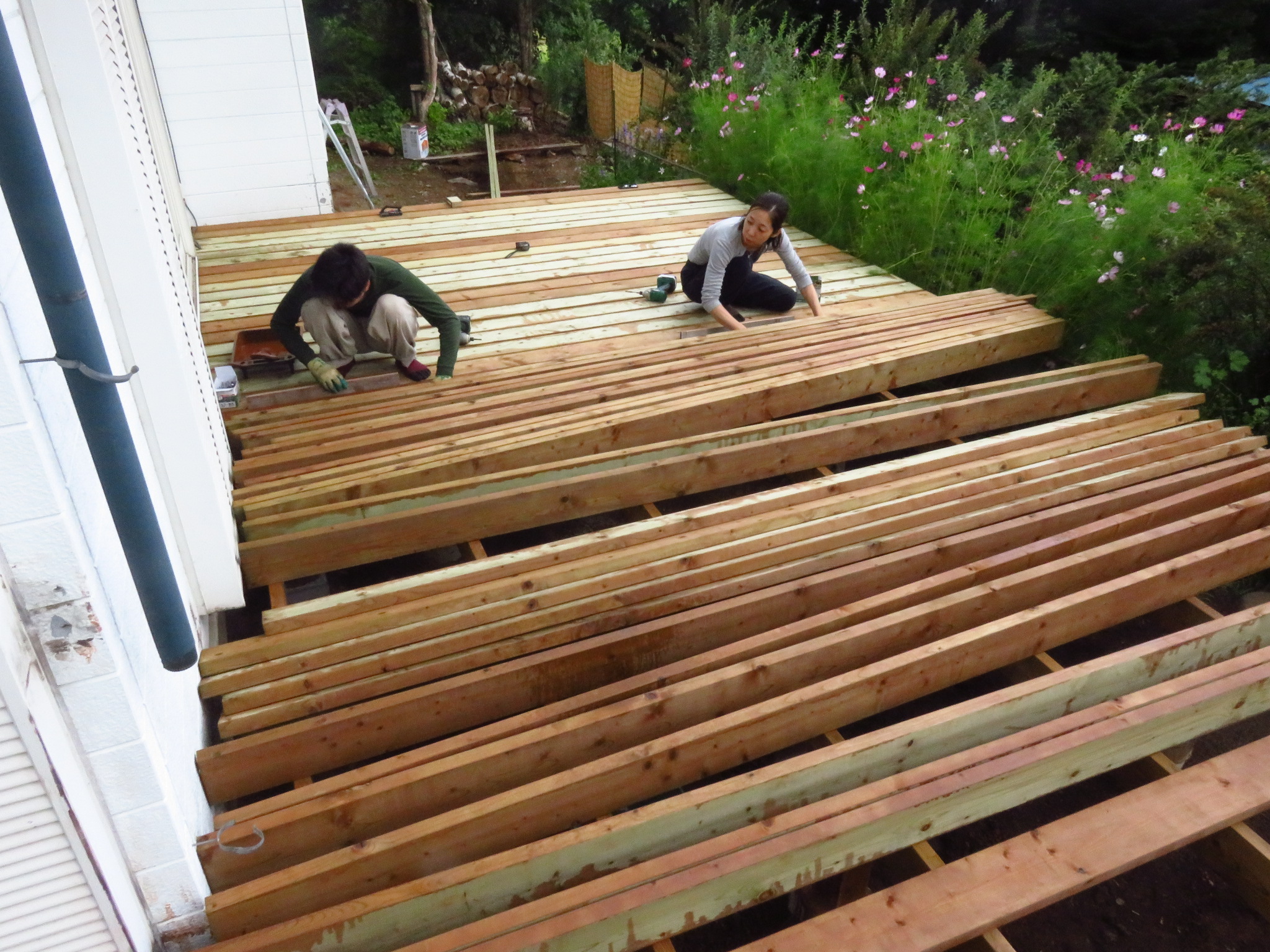 ウッドデッキ制作もいよいよ終盤です!!