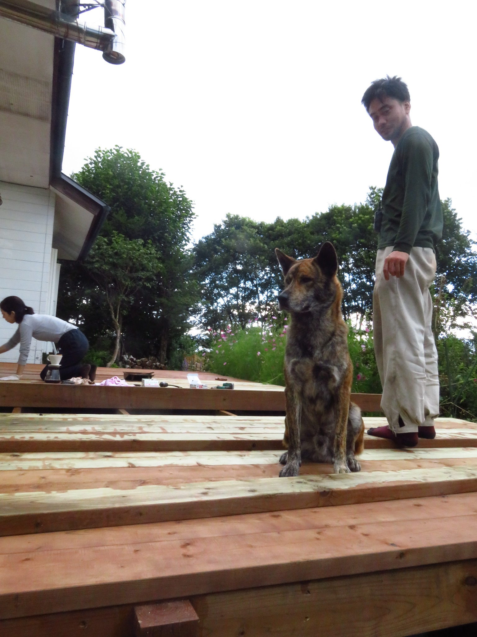 板打ち最中、うちのモモはというと、お父さんと休憩中。