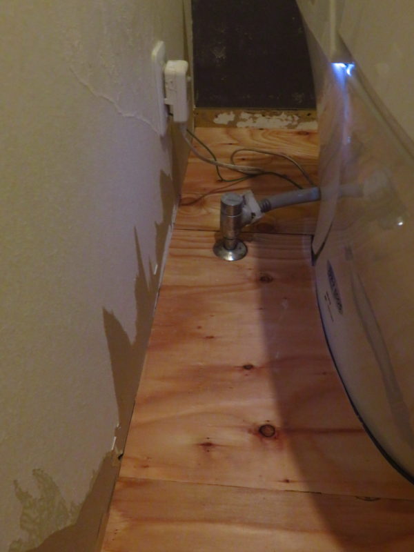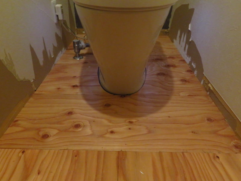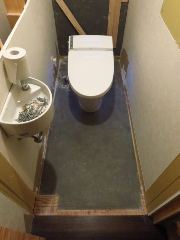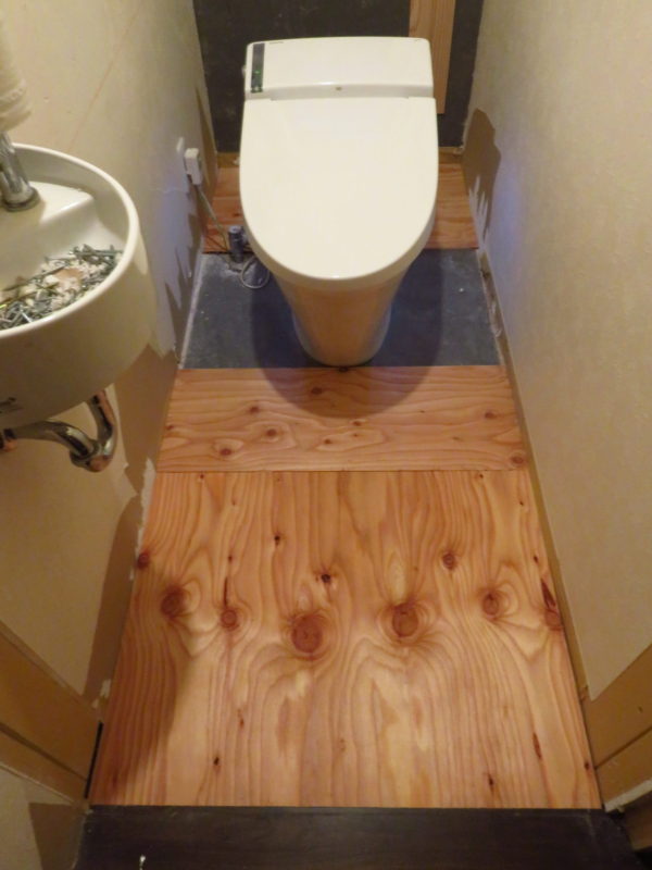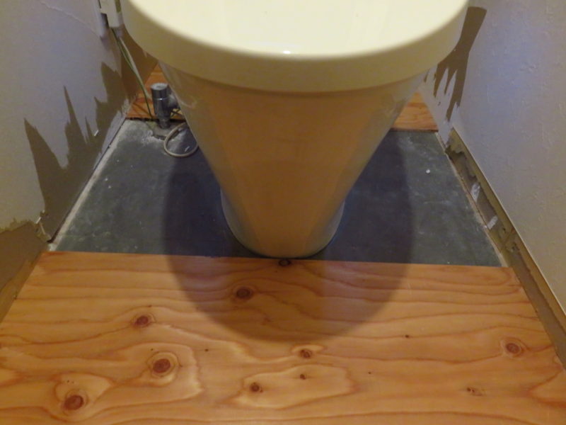まずは既存フローリングとトイレ床のレベルを合わせる為に合板を上貼り。