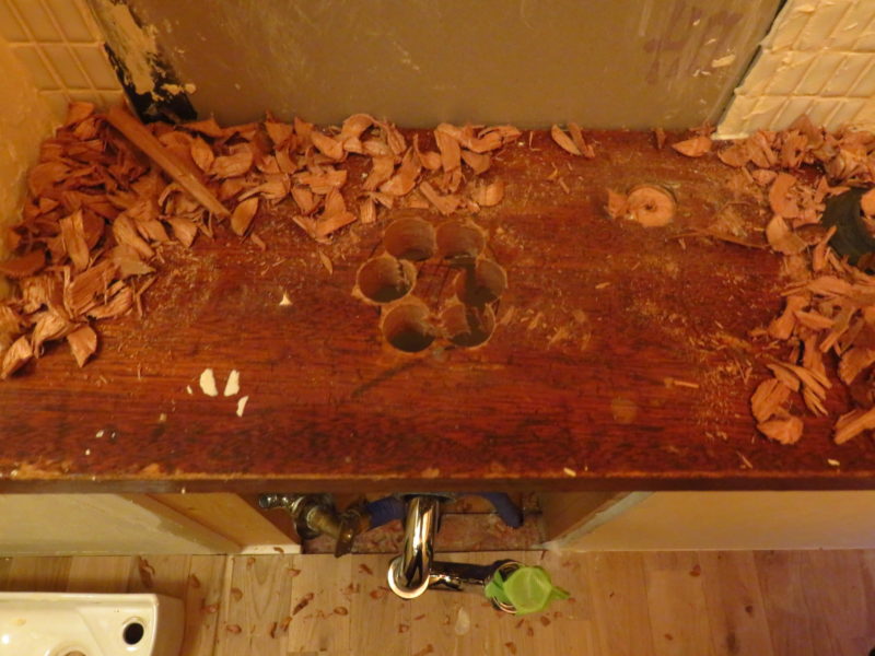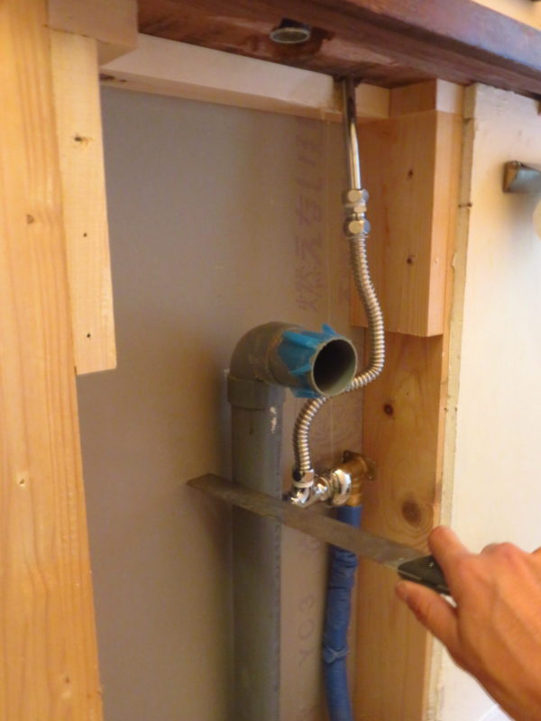 10cm奥にずらし埋め込み手洗いにする為に解体した配管付近