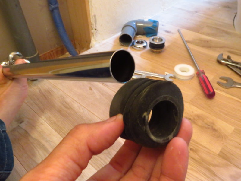 こんなゴムパッキンがもともとの排水管についていたのでこちらを差し込み