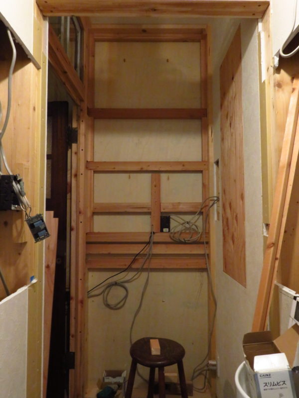 漆喰壁塗りなど地道に作業を進めつつずっと「改装中」のトイレ