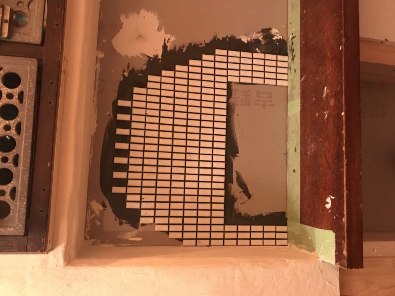 タイルを貼ったり床塗装したり後ろの収納を作ったりして